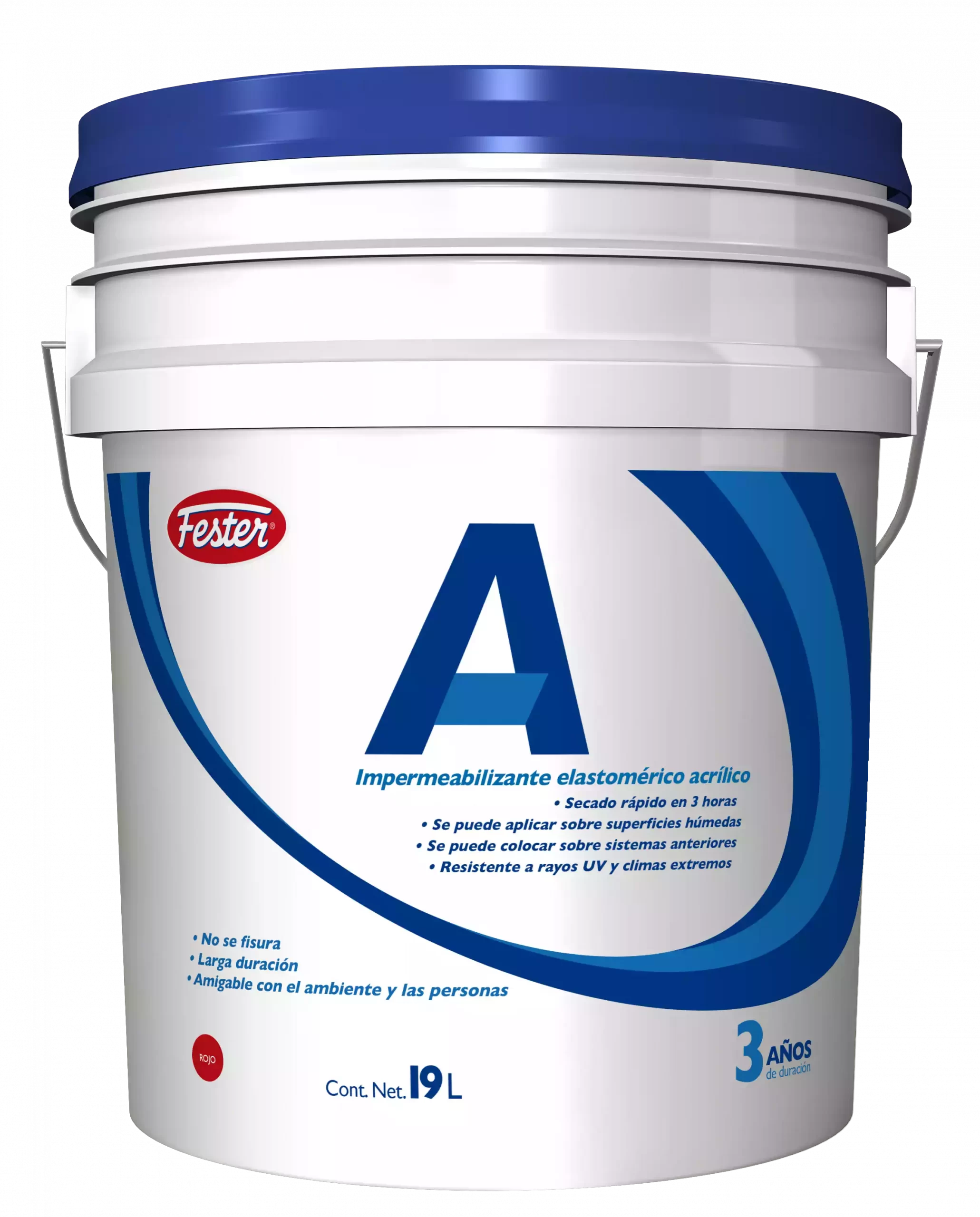 Impermeabilizante acrílico elastomérico base agua y de secado rápido. Fester A 3 Años Rojo 19 Litros.