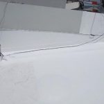 Se realizó la aplicación uniforme del sistema Fester Acritón Green Shield 10 Años en color blanco sobre toda la superficie de la azotea.